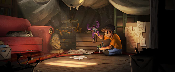 It all kind of started with a painting that I created in 2006 called The Journey Begins. A young boy finds a magic painting that